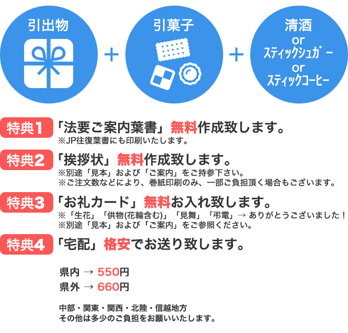 お香典金額が¥5,000以下の場合は即日返し(煎茶等)だけで宜しいかと思いますが、お仕事やお付き合いにより、後返しもされる場合がございます。