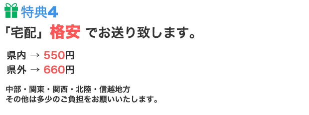 | 地域 | 宅配料(税別価格) |